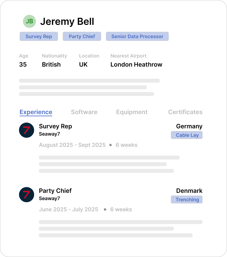 - Create the last offshore CV you'll ever need. Add your job experience, software and equipment knowledge, certificates, so you match exactly with client requirements.